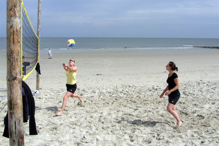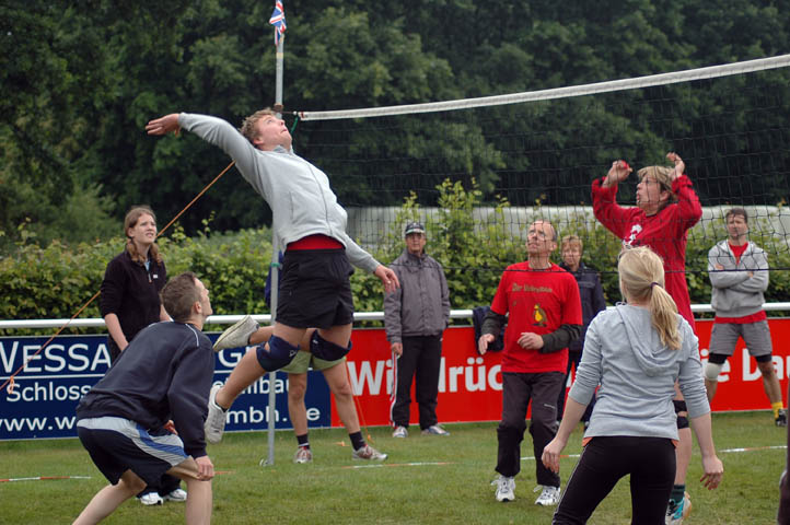 Beachvolleyball im Turn-Club: Neben dem klassischen Hallenvolleyball hat sich in den letzten Jahren die Funsportart Beachvolleyball etabliert. Um diese Sportart mit dem besonderen Strand- und Wetterfeeling auch in Bissendorf spielen zu können, hat unsere Volleyballabteilung im Jahr 2001 auf dem Sportplatz Bissendorf eine Beachvolleyballanlage erbaut. Diese wird regelmäßig sowohl von unseren Volleyballern als auch von Freizeitsportlern genutzt. Weitere Infos unter www.tcb-volleyball.de Wenn das Wetter mitmacht, nutzen unsere Volleyballer (siehe auch Ballsport/Volleyball ) diese Anlage um klassisches Beachvolleyball 2 gegen 2, aber auch 4 gegen 4 oder 6 gegen 6 zu trainieren. Regelmäßig nehmen wir dann auch an dem großen Freiluftturnier des TSV Engensen teil. Unten seht ihr ein paar Eindrücke vom Jahr 2009. Außerdem sind einige Bilder von unserer Fahrt ins Trainingslager auf der Nordseeinsel Wangerooge aus dem Jahr 2009 zu sehen. Bilder vom Engensener Turnier: