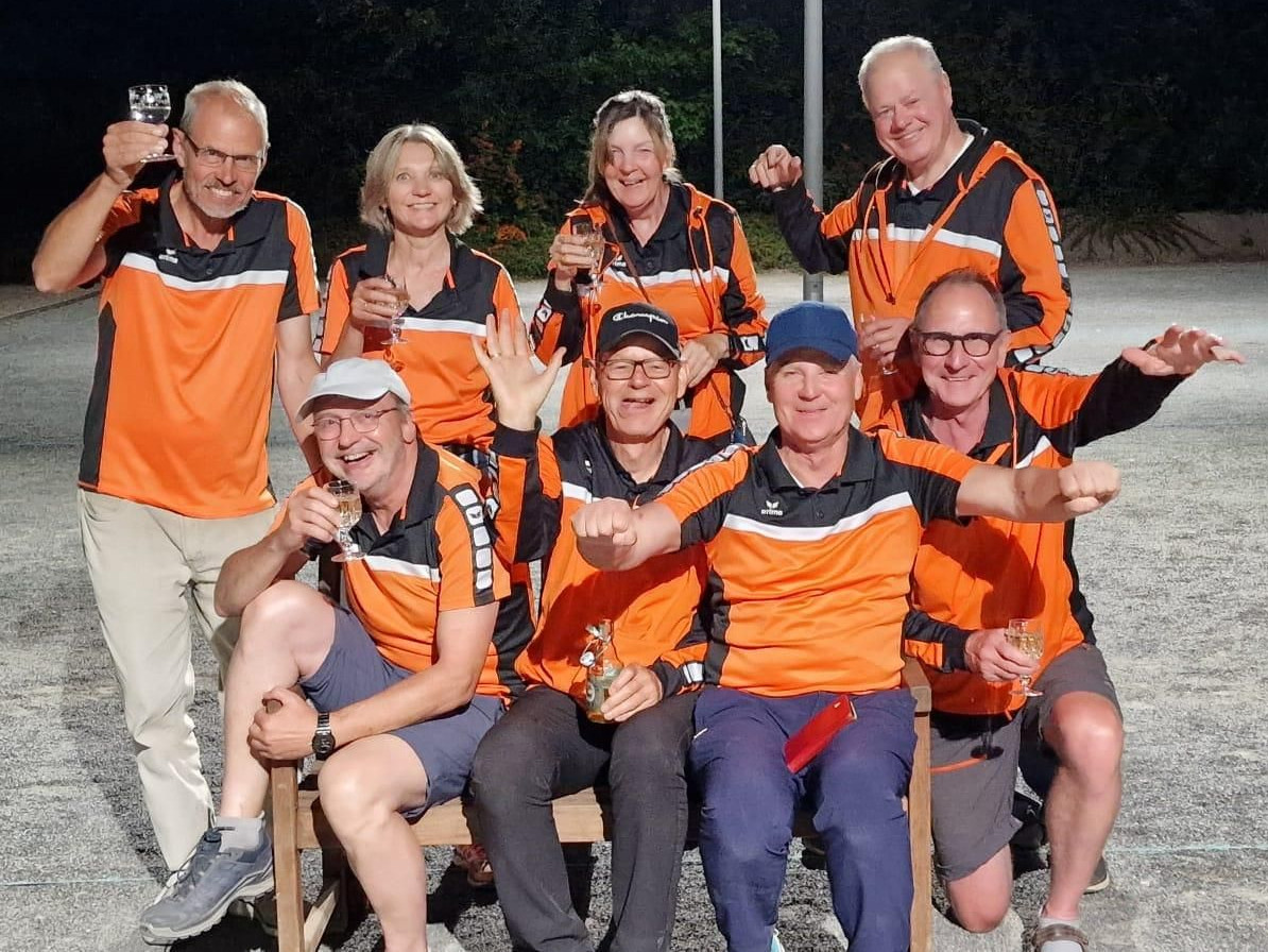 und am 08.07.2023 fand bei uns auf dem Platz die Qualifikation zur Landesmeisterschaft "Doublette Mixte" statt. Petanque ... ist Konzentration und Geselligkeit ... und ist offen für Alle !!! Wir spielen mit Metall-Kugeln (Boules). Ein Spiel, welches in ähnlicher Form auch unter Boule oder Boccia bekannt ist. Der Einstieg ist denkbar einfach, denn es wird weder besondere Sportkleidung noch spezielles Sportgerät benötigt. Und für den Anfang können die Vereinskugeln solange genutzt werden, bis klar ist, ob Pétanque der richtige Sport ist. Da typischerweise in Mannschaften von 2 bzw. 3 Spielern gespielt wird, können auch die unterschiedlichsten Spielstärken miteinander spielen.